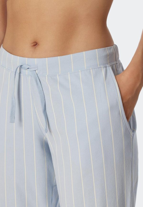 - 3/4-lange Hose für Damen mit Streifenmuster in Hellblau und Weiß