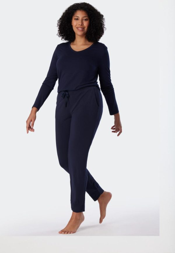Dieses Basic sollte in keinem Kleiderschrank fehlen! Die lange Damenhose sieht mit ihrem puren Style und den seitlichen Eingrifftaschen einfach gut aus. Komfort versprechen der breite, elastische Bund mit regulierbarem Satin-Bindeband und die breiten Beinabschlüsse. Jersey aus weich fließendem Modal mit einem Hauch Elasthan schenkt dabei pures Wohlbefinden. Die natürliche Faser ist besonders soft, atmungsaktiv und pflegeleicht. Beste SCHIESSER-Qualität zum Mixen und Relaxen!