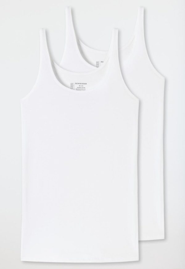 Dieses beiden Tops aus der beliebten SCHIESSER-Serie „95/5“ sind Unterhemden mit hohem Tragekomfort! 95% seidigweicher Organic Cotton und 5% Elastan versprechen dabei ein herrlich softes Gefühl auf der Haut sowie eine optimale Passform. Ein bequemer, unkomplizierter Doppelpack für Damen, die nachhaltige, puristische Wäsche lieben!