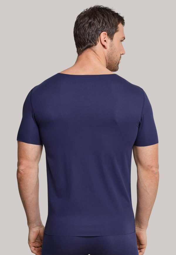Herren SCHIESSER Shirts | Shirt Interlock Seamless Kurzarm V-Ausschnitt Blau Laser Cut Blau