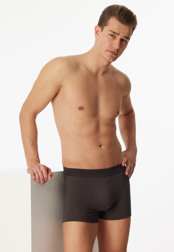 - anthrazitfarbene Herren-Shorts mit geometrischem Print in Hellbraun